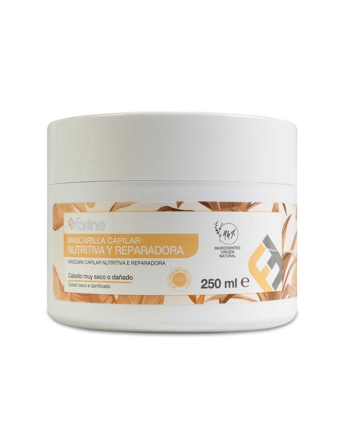 Farline Mascarilla capilar nutritiva y reparadora, este tratamiento de nutrición profunda elaborada con ingredientes de origen natural (94%) , está diseñado para reponer la pérdida natural de lípidos y vitaminas, devolviendo al cabello un aspecto reparado e hidratado. Hidrata, repara y desenreda el cabello. Apto para el método curly. Sin siliconas.
